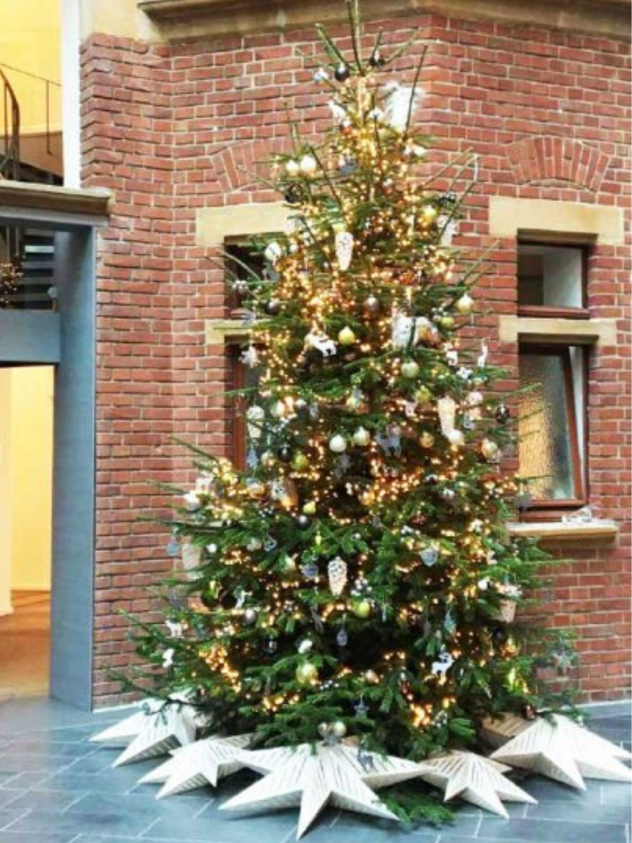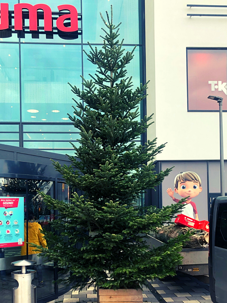 Noch größere Bäume wären/sind auch möglich, erfordern jedoch überproportional mehr Aufwand hinsichtlich Fahrzeuge, Kräne etc. Bis 6 Meter ist das Handling noch überschaubar, dennoch erfordert es individuelle Absprachen. Es ist nicht möglich Bäume im Außenbereich in herkömmlichen Ständern aufzustellen. Wir bieten dazu mit Steinen gefüllte Holzkisten (Eigenbau) an, um große Bäume standsicher und ohne Schäden am Untergrund (z.B. Einkaufcenter) aufzustellen. (Bitte Referenzfotos in der Galerie ansehen). Bereits Bäume über 4,50 m sollten in einer bauseits vorhandenen Bodenhülse stehen.